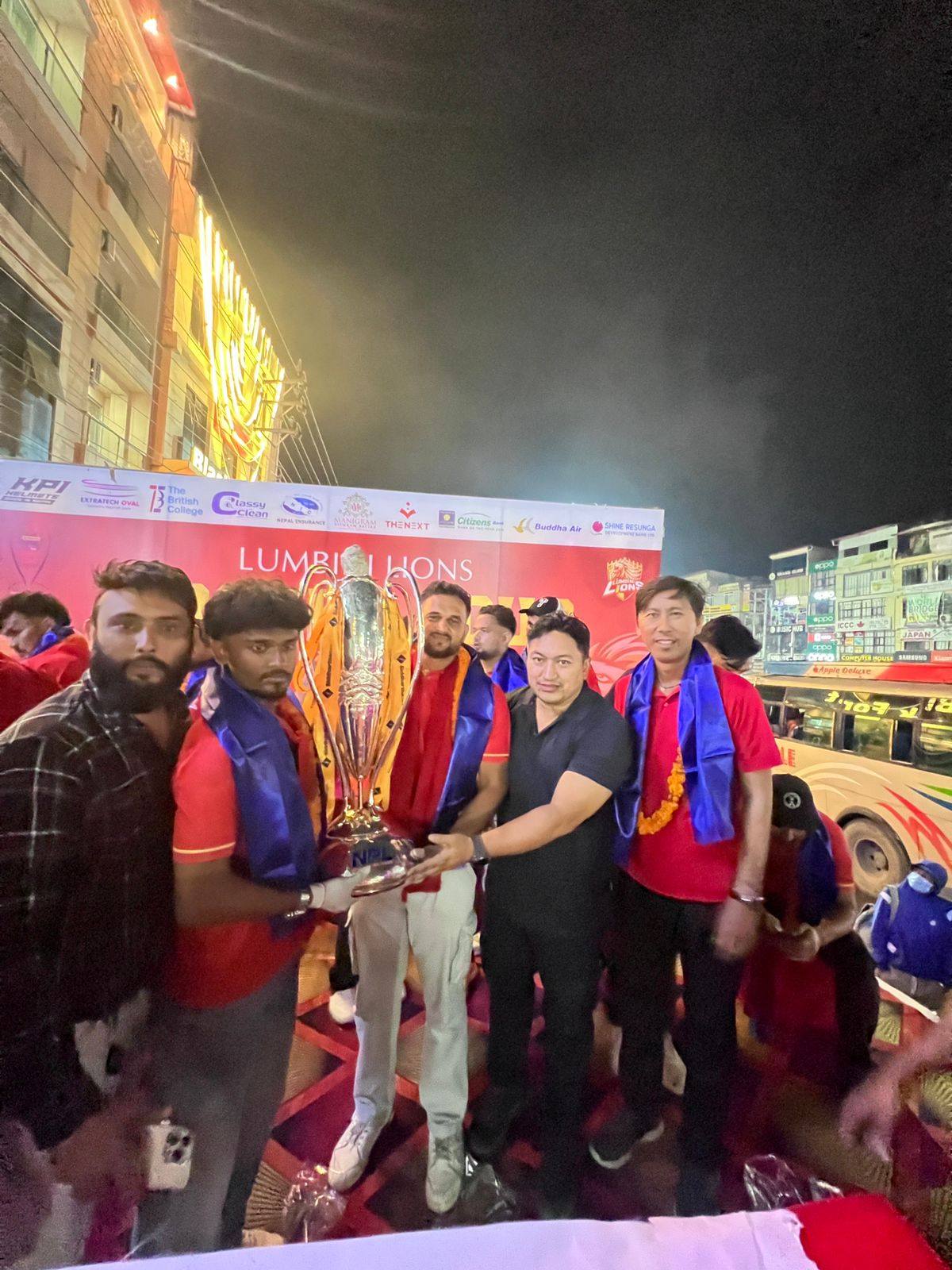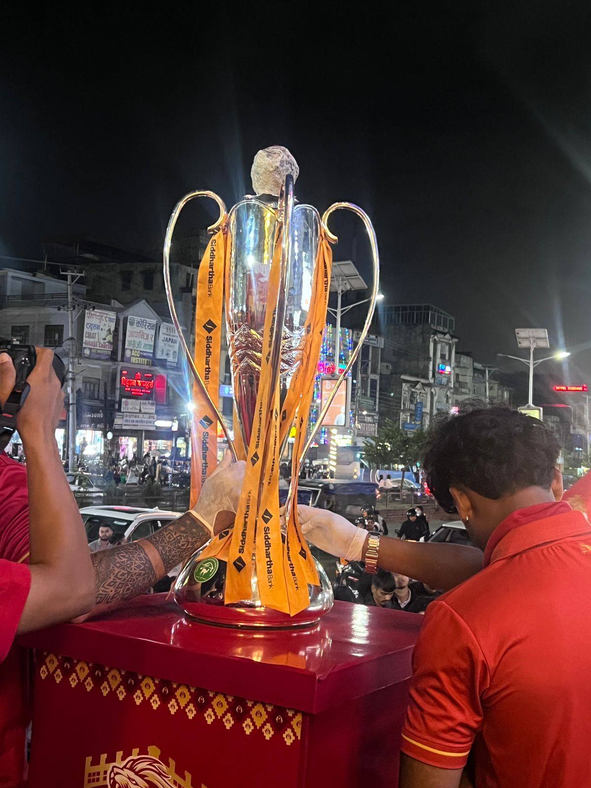 What an end for the Trophy Tour with Full Cricket Supporters chanting Lumbini Lions - "ShyaBaas "Slogan released by Lumbini Lions Manager Mr. Gaurav Phuyal on Stage....